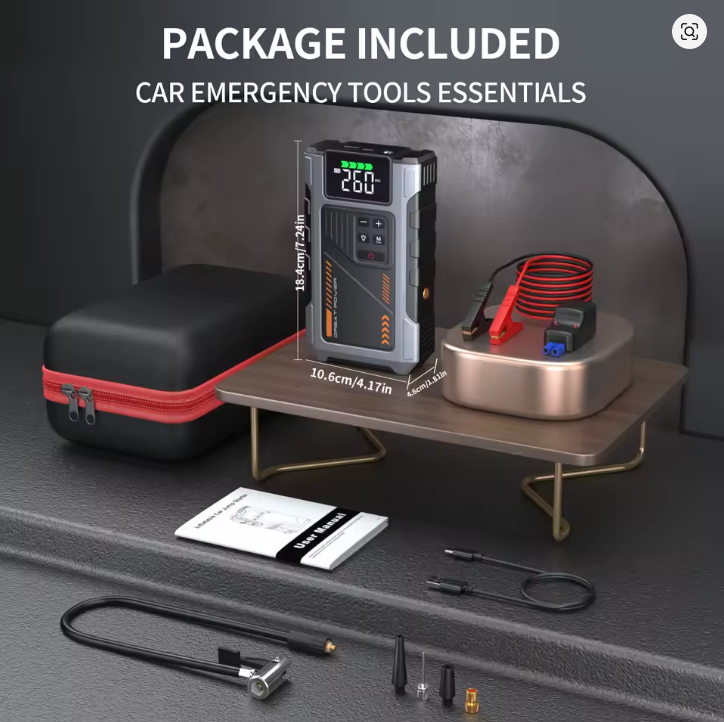Why carry separate jumper cables, a bulky air compressor, and a power bank? The NEXUS combines all of them into one sleek, compact device that fits easily in your glove box, giving you everything you need for a roadside emergency.